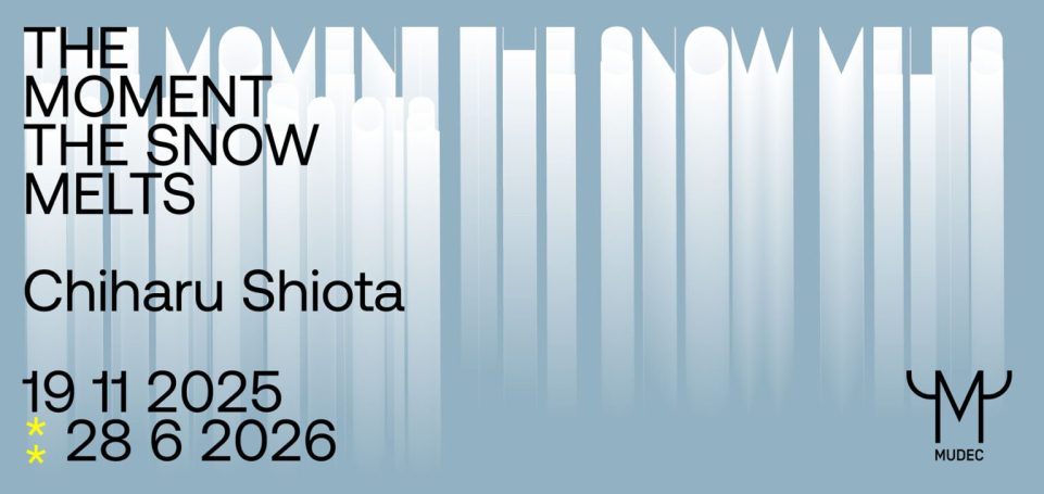 The Moment the Snow Melts is the site-specific installation by Chiharu Shiota (Osaka, 1972) presented at MUDEC as a prelude to the exhibition Il senso della neve (The Sense of Snow), opening in February 2026. Conceived for the museum’s Agora space, the work transforms the architecture into an evanescent landscape composed of countless vertical threads descending from the ceiling, evoking the delicate and transient presence of falling snow.